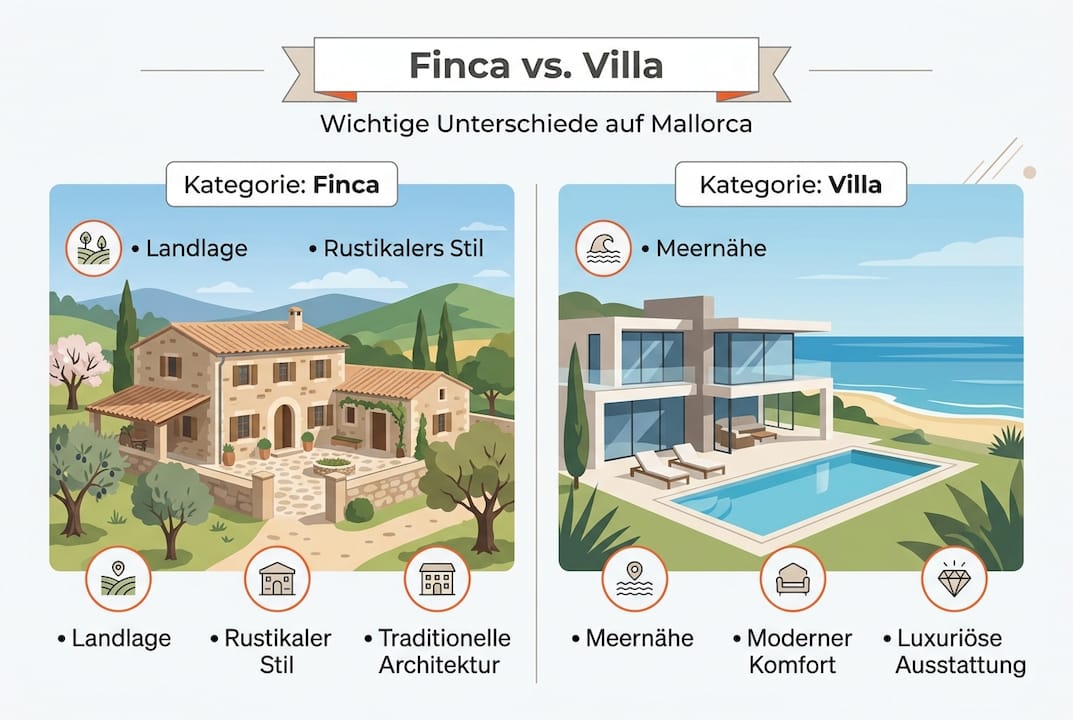 Was ist der Hauptunterschied zwischen einer Finca und einer Villa auf Mallorca?